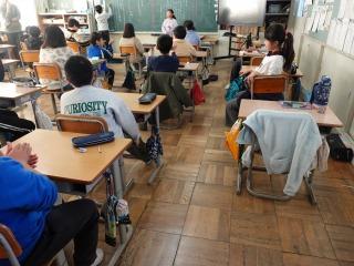 中学校での生活はどう変わるのだろう。どんな部活動があるのだろう。勉強は難しくなるのかな。中学校進学を4か月後に控えている6年生。南中の先生や生徒会の皆さんから、「生徒心得」や中学校生活についての説明を聞いた後、校舎や授業の見学をさせていただきました。話を聞く表情から、中学校への不安が一つずつ期待に変わっていくのを感じました。今を大切にしながら、中学校に向けて準備を進めていきましょう。