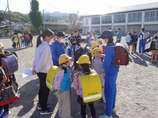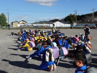 全校での集団下校を行いました。今日は、班別に登下校の様子について振り返りの時間をとりました。一列に並んで歩くこと、ルールを守ること、あいさつをしっかりすること・・・ぜひ、話し合ったことを守って、安全な登下校ができるようにしていきましょう。
