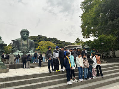 1つ目のチェックポイント鶴岡八幡宮から、班の計画に沿って見学、昼食を済ませ高徳院へ。古い建造物を見学したり、外国の方とお話ししたりしながら、歴史とともに新しい文化も感じることができているようです。
