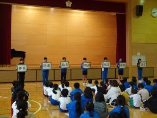 運動会が終わり、いよいよ後期委員会がスタートしました。今日は、学校全体のまとめ役となる運営委員の紹介と、各委員会の委員長から、それぞれの活動内容や全校へのお願いなどの発表がありました。発表の中には、「額部小をよりよくするために」という言葉がたくさん出てきました。みんなが楽しく充実して過ごせる額部小を、全員でつくっていきましょう。