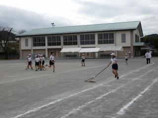 いよいよ明日は運動会です。4年生以上の児童と職員、PTA運営委員の皆さんにもお手伝いしていただき、運動会の会場準備を行いました。これまで練習を積み重ねてきた成果を発揮する舞台が整いました。みんなの力を合わせて、すばらしい運動会になることを願っています。