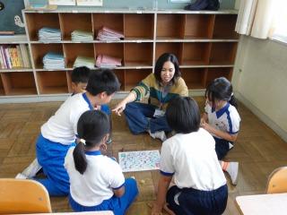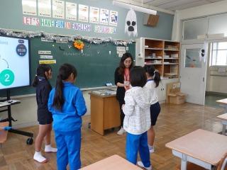 ハロウィーンの飾り付けがひときわ目を引くFunglish roomです。中からは、楽しそうな声が聞こえてきます。アルファベットの学習をしてきた3年生が、3つのグループに分かれてゲームを楽しんでいます。楽しく遊びながら、繰り返しアルファベットに親しめる、笑顔あふれる時間になりました。